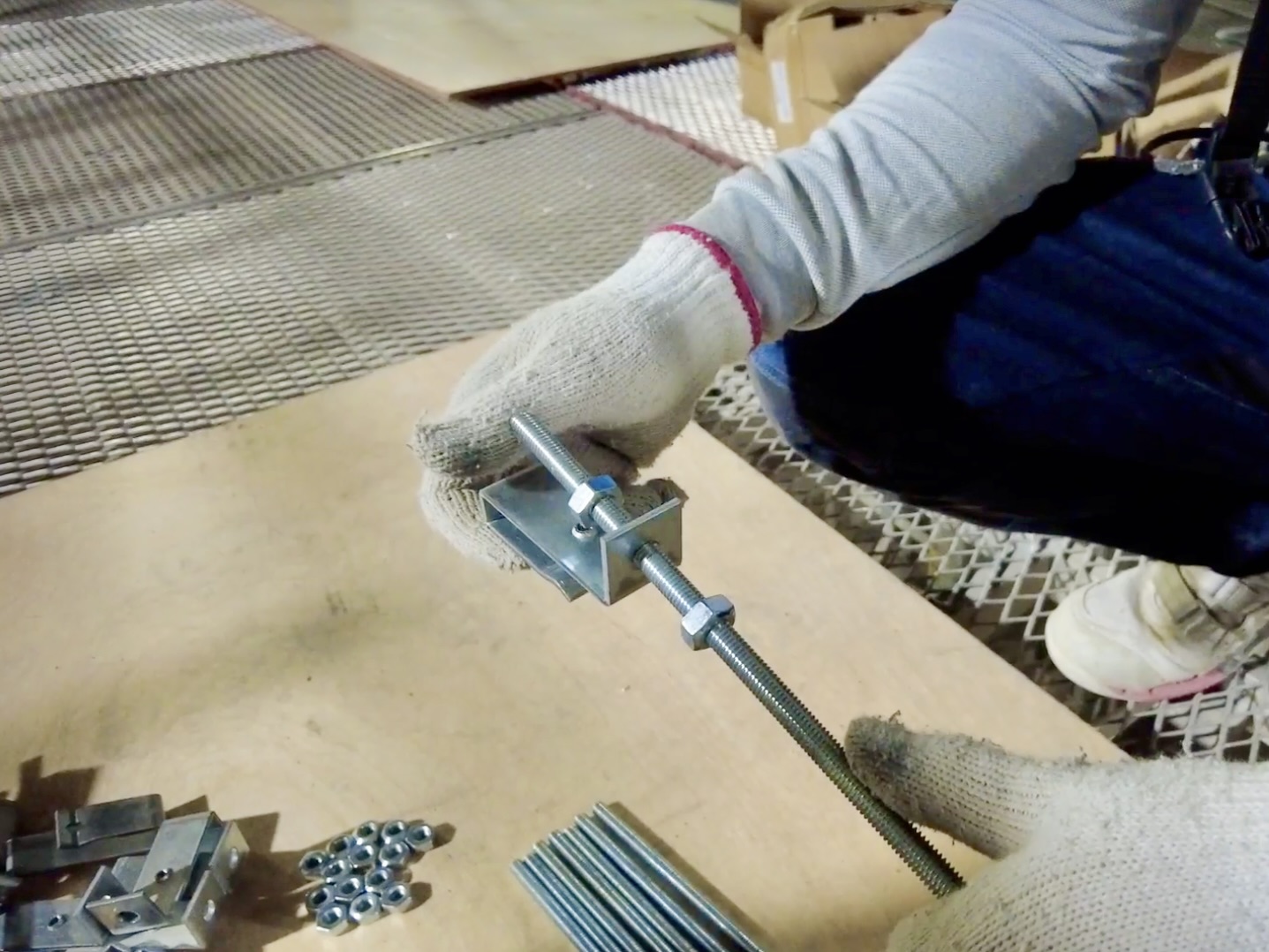 1本のボルトに対して「ナット」、そして吊るすための「ハンガー」というパーツを組んでいきます。