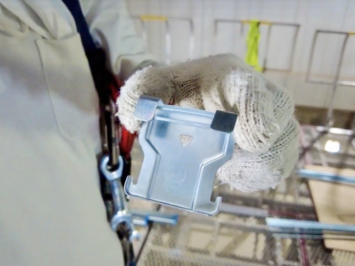 先輩がバーを設置した後を追いかけて、どんどんこのクリップを付けていってください。